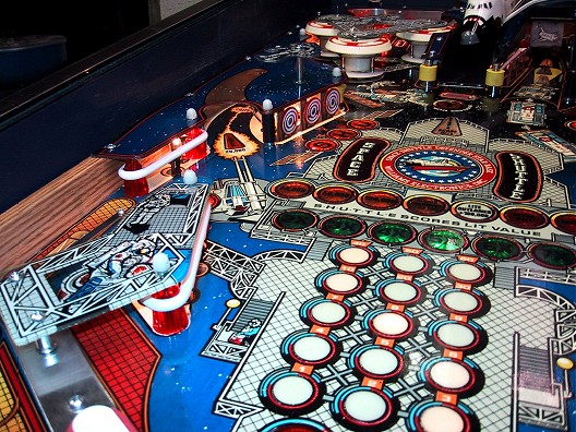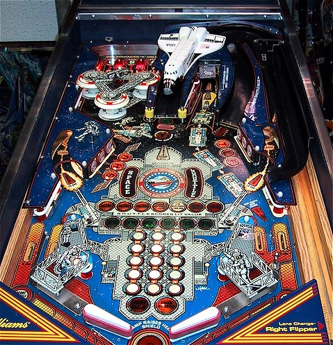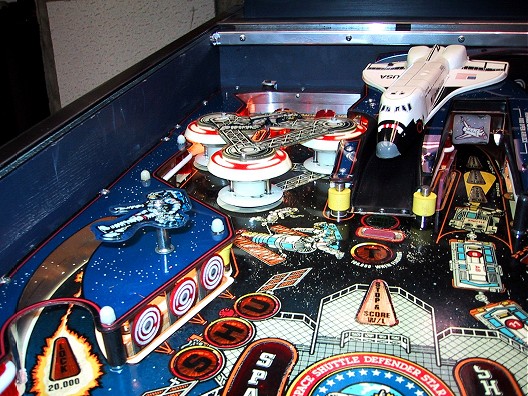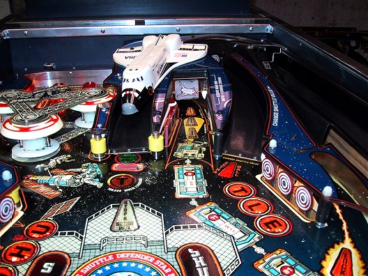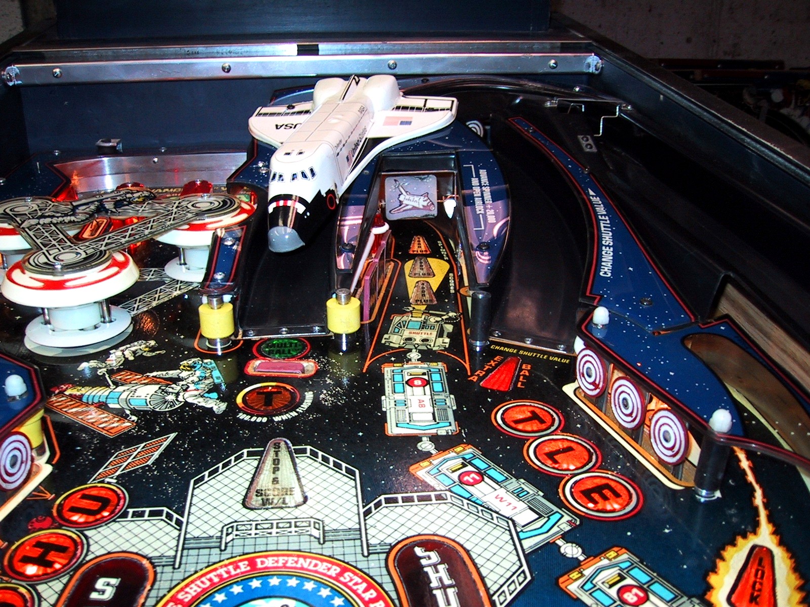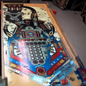 Never mind that I think Space Shuttle could still earn if maintained (the theme still holds true today). His short sightedness was my gain. The game worked perfectly, but was extremely dirty. It looked like it had been about 5 years since somebody last cleaned the game. However, the playfield was Mylared! We struck a deal and all I had to do was move it a block down the boardwalk and then down the ramp to my van! The game made it back to the gameroom in fine shape and played perfectly from day one. The Mylar was extremely dirty and I made the decision to remove it as part of the shopping process.