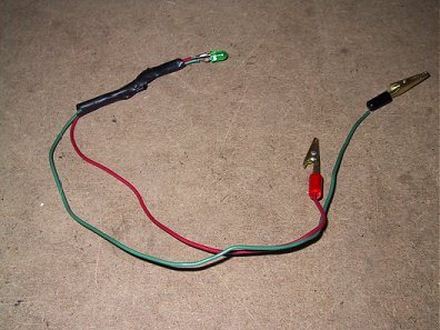 All you need is a LED (any size or color) and a 1,000 ohm resistor (1/4 or 1/2 watt is fine). Solder the resistor either leg of the LED and run then solder about 18 inches of wire to the other leg of the LED and to the resistor. Use different colors so you can tell positive from negative. I would suggest attaching some small alligator clips to the end of the leads, but its not required. If you use stranded wire, be sure to tin the ends.