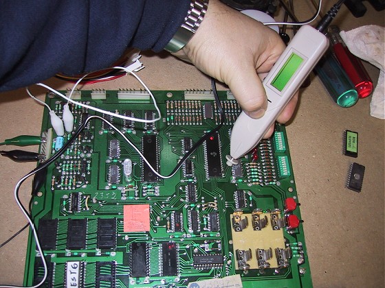 is at: You will need to get a copy of the "test ROM" before starting. It is impossible to test your boards with the game software as it will lock up if anything is amiss (which is why you're reading this!). The test ROM will boot under almost any condition, and also without the driver board attached (game software requires the driver board to be attached to boot successfully). If you have access to a ROM burner, then Download the System 6 image here and burn the software into a 2716 or 2516. If you are testing a System 7 board, then Download the System 7 image here and burn it into a 2532. Update 6/8/12 - PLEASE NOTE THAT I NO LONGER SELL THE TEST CHIP. 2.2 Tools Required: Not as many as you would think. At a minimum, to test your boards you'll need: