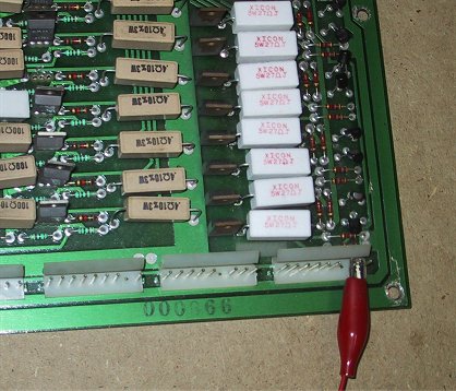 System 6 board: You're now ready to test the PIAs on the driver board with either your Logic Probe or the test LED. To use the test LED, connect the negative end to ground and then touch the positive end to each output on the PIA (pins 2 through 17). I prefer to use a Logic Probe for this since it has a smaller tip. Note, testing the third PIA on the driver board (IC11, the vertical one), you will need to short the pins on connector 2J3 to ground in order to test outputs PA0 to PA7 (pins 2 through 9). Driver Board setup for bench testing lf the PIAs are working, you can move onto the driver tests. I prefer to use the test LED to perform the majority of the remaining tests: Switch Matrix Driver Test - Connector 2J2 Connect the positive side of the Test LED to +5v. Then touch the negative lead to each pin on 2J2. You should see the LED pulse in time with the MPU board LEDs. If you don't get a light pulse on one of the pins, then trace the signal back through either IC17 or IC18. If the PIA has a good signal, but none shows up at the pin, then you need to replace either IC17 or IC18. Switch Matrix Input Test - Connector 2J3 (updated 7/22/03) You need to test the switch inputs at the PIA itself. The inputs are on PIA II (IC11), pins 2 through 9. To test input #1, ground pin 9 of 2J3 and then using your test LED or Logic Probe, look for a pulse at pin 2 of IC10. Then move the ground to pin 8 of 2J3 and check for a pulse at pin 3 on IC10. Continue moving the ground down a pin and checking the next PIA pin (PIA pin 4 to connector pin 7, etc). Lamp Strobe Test - Connector 2J5 This test requires an additional power connection (see below). Connect +5v to any pin on connector 2J4. Remove the positive connection of the Test LED from the +5v connection. Then connect the negative side of the Test LED connected to ground. Perform the test by touch the POSITIVE side of the Test LED to each pin on connector 2J5. If you don't get a flash, check the input to the IC controlling the pin (IC13 or IC14). If you have an input then you'll need to replace either the TIP42 or the pre-driver 2N6472. The test LED won't show the output of the IC due to the short signal pulse.